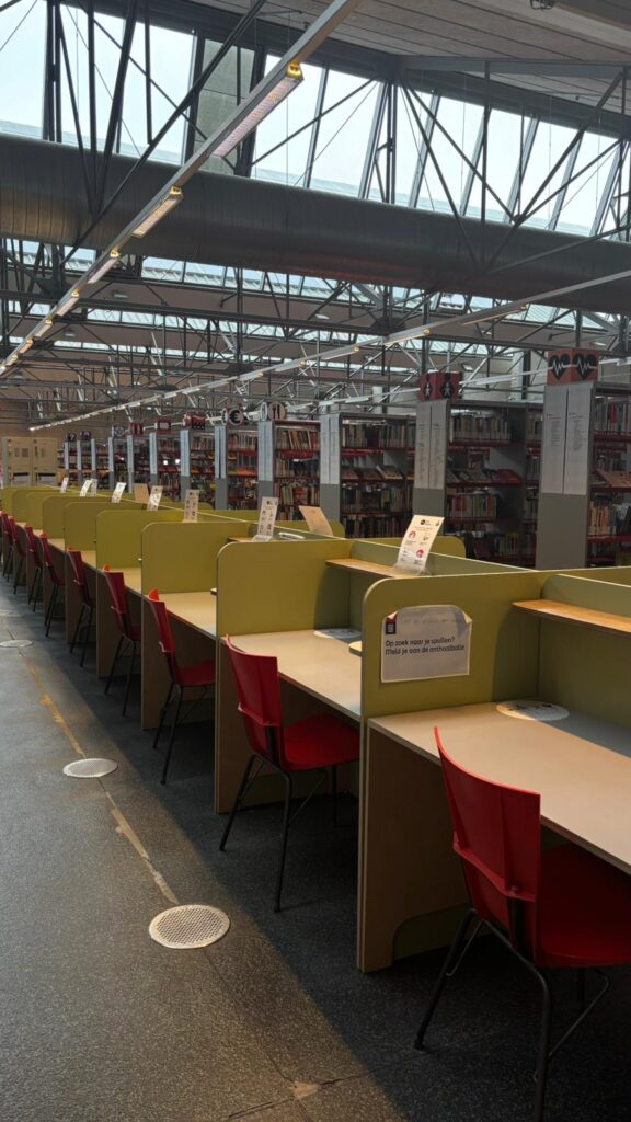 Permeke is a public library in Antwerp. All kinds of people come together here: children, young adults, movie addicts, book lovers, students,… It’s a very popular study place, so make sure to book your spot via Book a place. As this library is a bit more crowded, it’s definitely not a bad idea to bring noise cancelling headphones or earplugs.